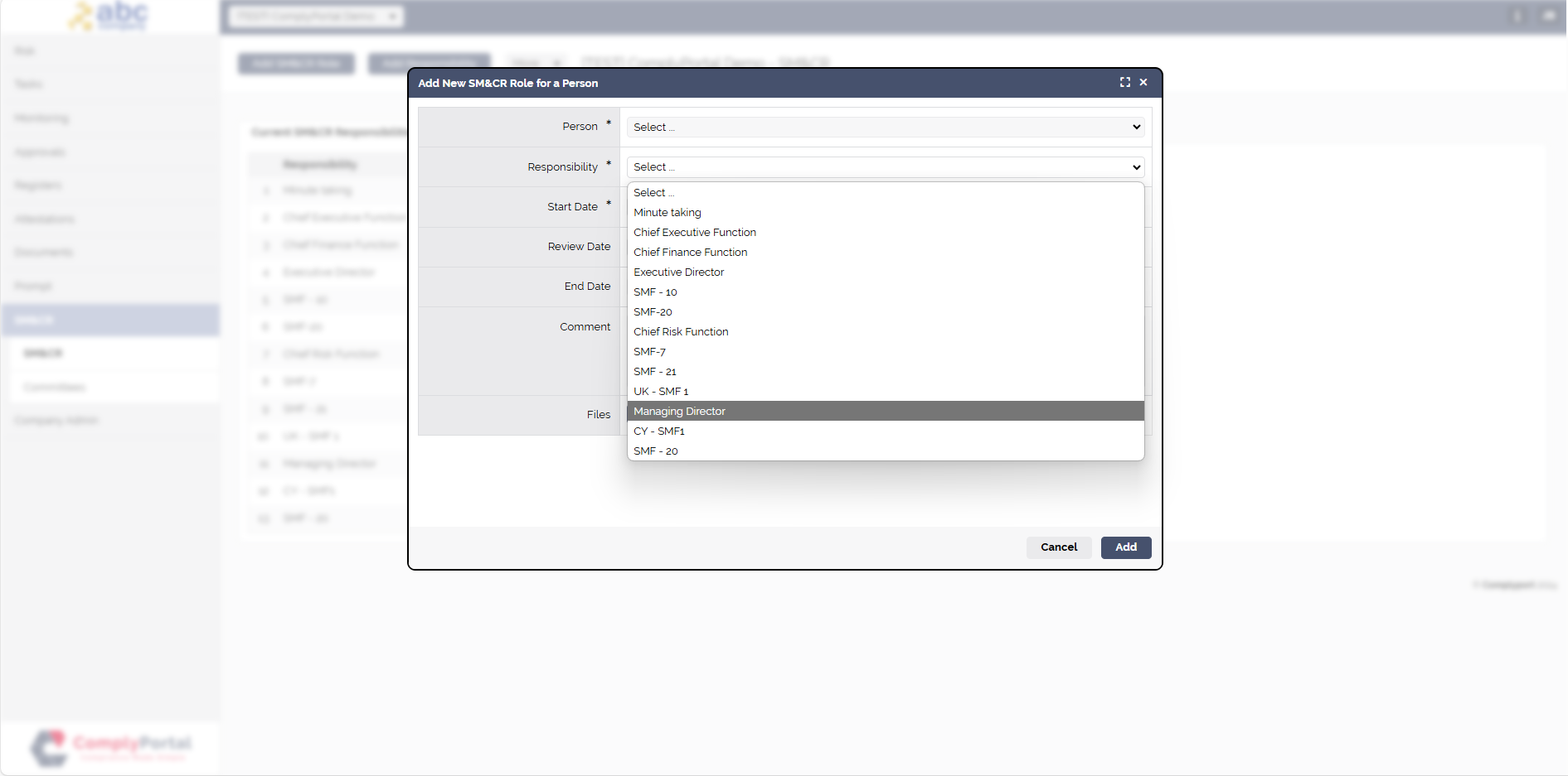 Effectively manage roles and responsibilities for Senior Managers, Certified Individuals, Conduct Rules, Ancillary Staff, Leadership team members and Senior Executives.